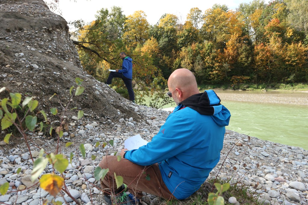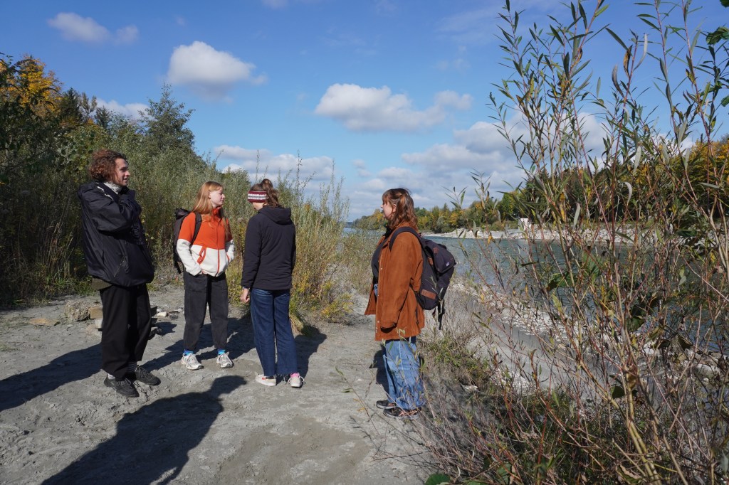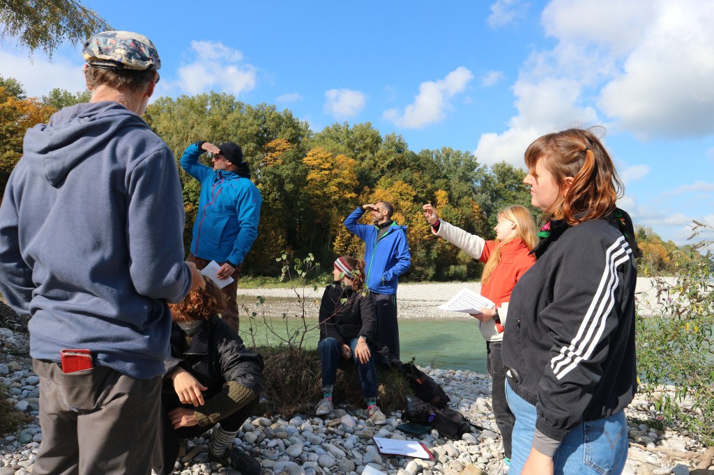 Während einem 3 Stündigen Workshop am Saalachspitz erlebten die Teilnehmer*innen eine renaturierte Landschaft hautnah und erlangten historisches Wissen über den Ort und seine Entwicklung.